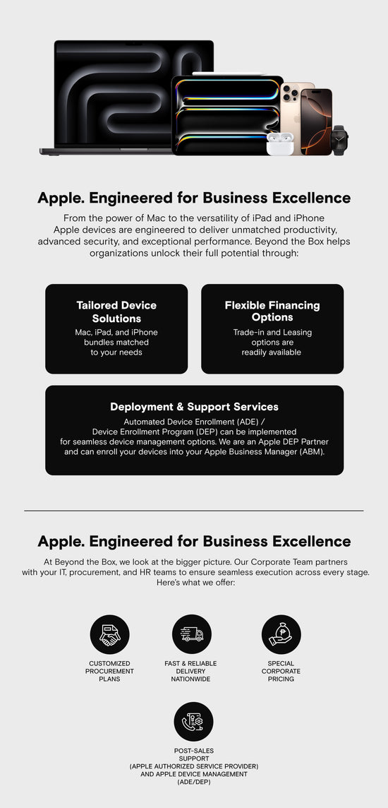 Empower Your Business with Apple, with Beyond the Box Business Solutions.