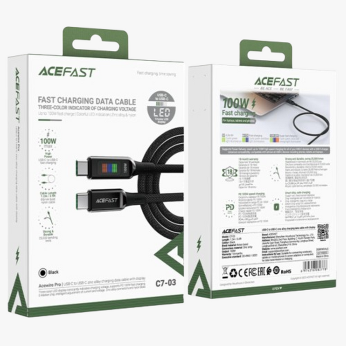 Acewire Pro C7-03 USB-C to USB-C Cable 100W 1.2M - Black